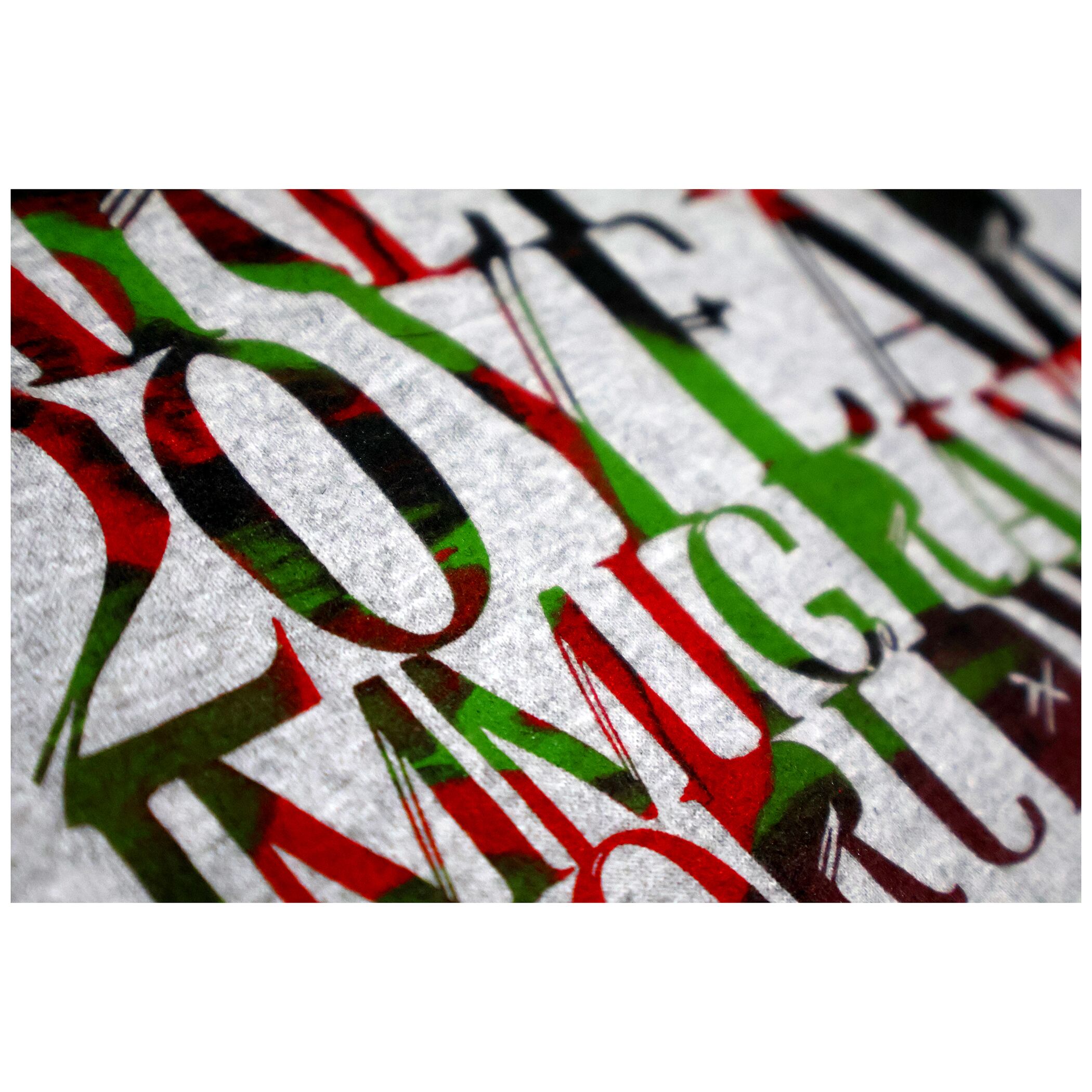 The X-Clan, A Tribe called Quest, Dead Prez vibe. Props from film/photo shoot at the Counterpoint workshop studio in Flushing, Queens for an upcoming documentary film series featuring the diy collaboration history between Paul Gnu (Counterpoint Garments) & La Mano Fria (Beta Bodega/Sud Swap Audio/Tokyo Book Club) since the early 90's in South Florida to now (NYC/Tokyo). The Arepaz record label is an official affiliate of Beta Bodega Coalition and was launched officially in 2005 to provide yet another take on progressive Latin American music. Electronic instrumentals provide the landscape of sounds celebrating immigrants worldwide, in particular NYC and South Florida. The filming was in 2025, coinciding with the record labels 20 Year Anniversary. Typeface by La Mano Fria, inspired by Sopa de Letras.